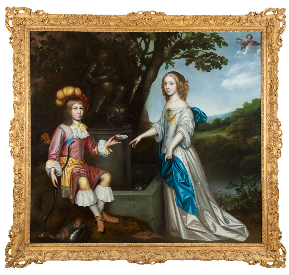Porträt eines jungen Mannes und einer jungen Dame am Brunnen